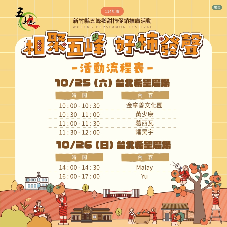 【轉知】新竹縣五峰鄉公所辦理「2025年相聚五峰,好柿發聲暨五峰鄉農特產品促銷推廣活動」