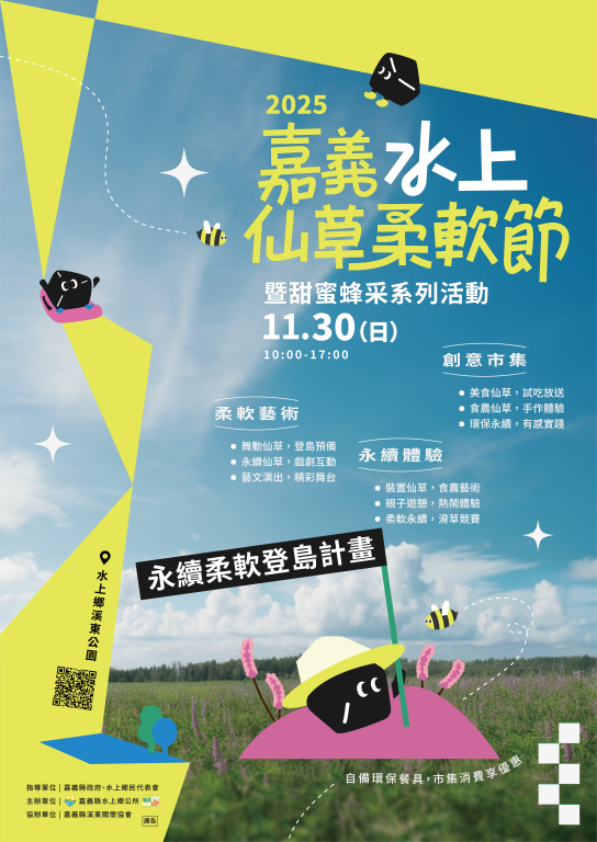 原訂114年11月15日(星期六)假水上鄉溪東公園舉辦之「2025年嘉義水上仙草柔軟節-永續登島行動」,因受鳳凰颱風來襲影響,考量民眾安全及現場設施布置作業,將延期舉辦,活動內容將依原規劃執行。
